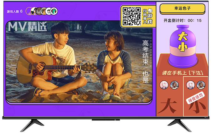 全新大屏互动娱乐功能,微信扫码操作,大屏同步呈现,人人皆可参与,包厢K歌不无聊。