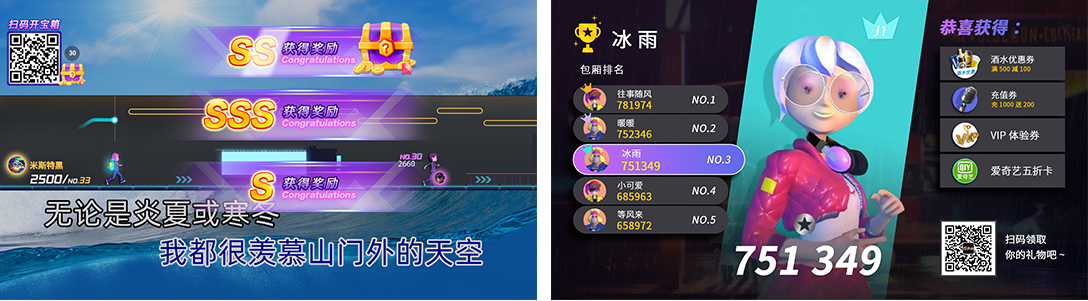 当用户音准与评分条高度匹配时,评分条弹出奖励离合,商家还可结合奖励活动进行促销,吸引顾客消费。