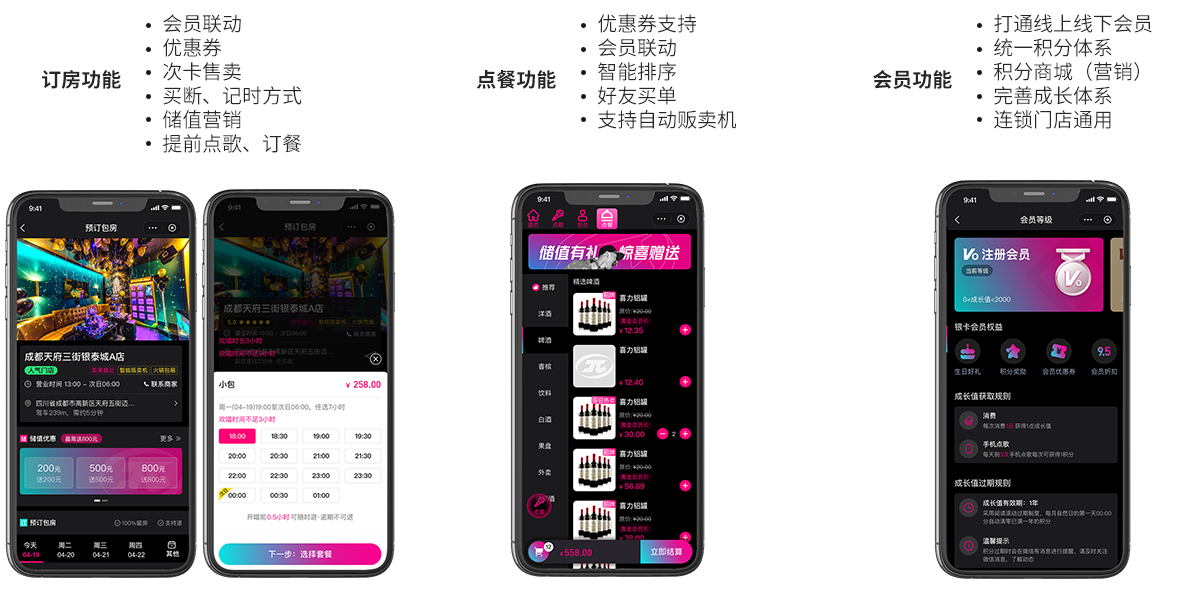 为场所提供智能、高效、便利的数字化运营赋能,有效解决场所促销难题,帮助KTV加强变现盈利能力,提升经营竞争力。