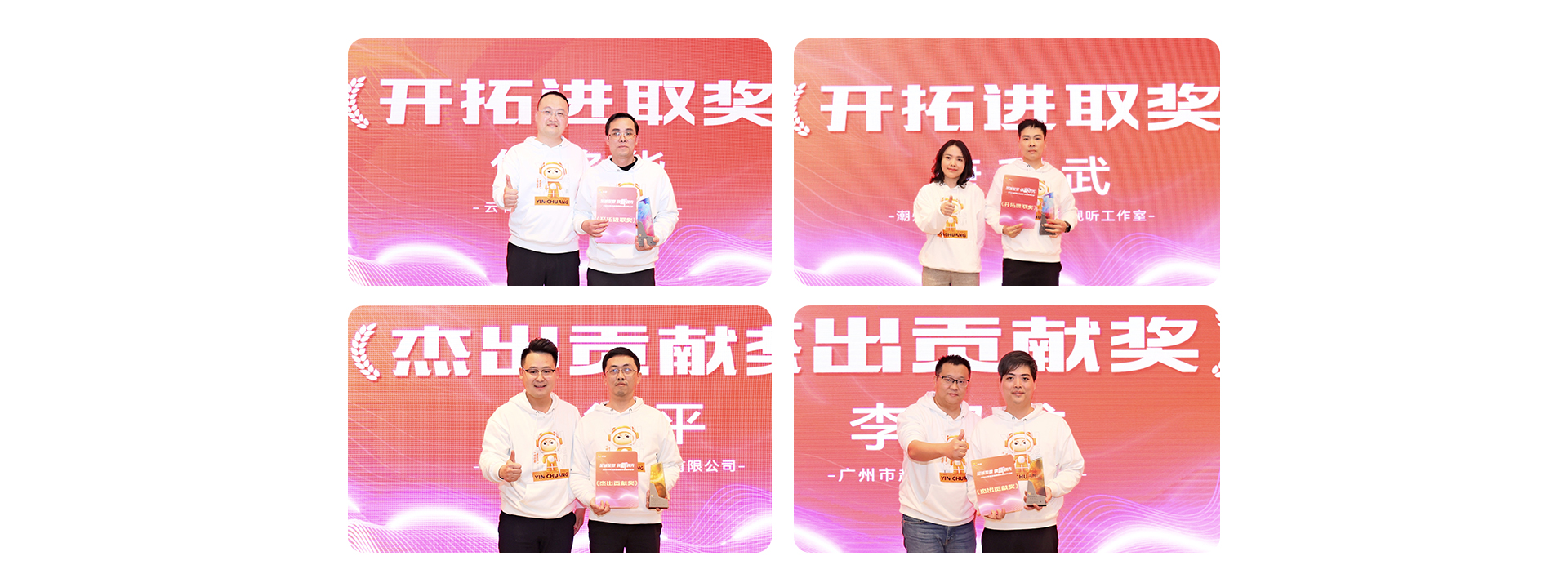 在3月6日的会议尾声,音创对做出卓越贡献、进步显著的优秀合作伙伴进行了表彰,分别颁发了“开拓进取奖”“杰出贡献奖”“年度超越奖”以及“笑傲江湖奖”四大奖项,以此鼓励所有合作伙伴砥砺前行,同心共进!