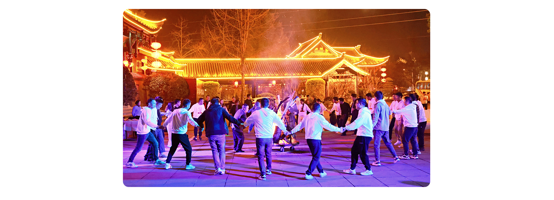 夜幕降临,篝火晚会在美妙的音乐声中开启。各位合作伙伴于篝火旁载歌载舞,在一片欢声笑语中,共同祝愿音创发展越来越好。