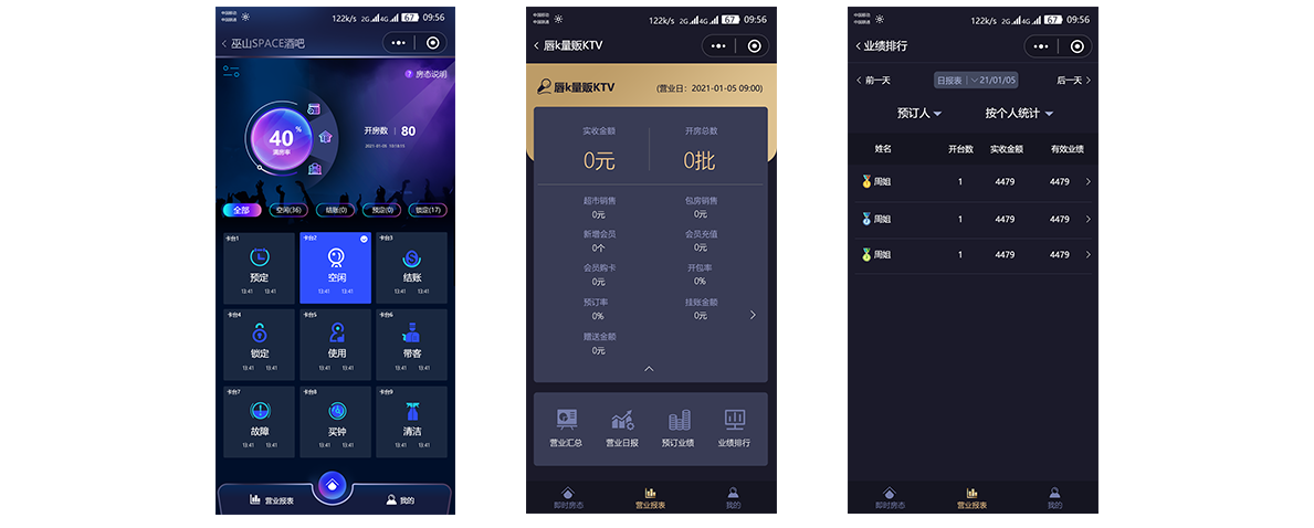 对于高端娱乐场所的运营管理,音创专为商家定制了财升云管系统---商务K模块。系统打通手机端、PC端、收银端,实现“三端”互联,数据适时同步,线上线下协同联动。智慧移动管理,满足场所运营的丰富功能,为顾客提供更快捷周到的服务。