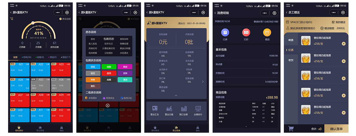 根据高端娱乐场所的需求,云管系统商务K模块主要包括人员管理、会员系统、吧厨系统、收银管理、报表管理、账单管理、营业汇总分析、首充返利、低消修改、开放预订权限、协议销账等丰富易用的功能。涵盖娱乐场所各个管理环节,全面帮助商家决策运营。
