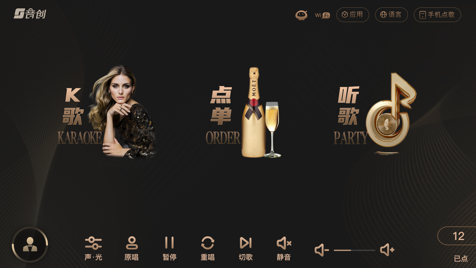 DREAM KINGDOM在娱乐系统上采用音创全套商务K解决方案,给予用户更加尊贵轻奢的消费体验,精细化的管理系统,帮助商家门店更好提升经营效率。音创全新商务K,不只是简单的VOD娱乐点播系统,更是一整套商业娱乐解决方案,从娱乐、运营、管理等三大维度,助力商务KTV的升级发展。