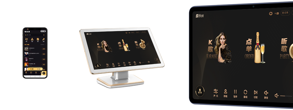 点歌屏、Pad、手机,三种点播终端