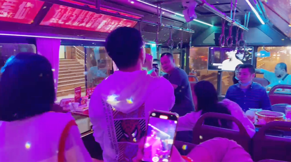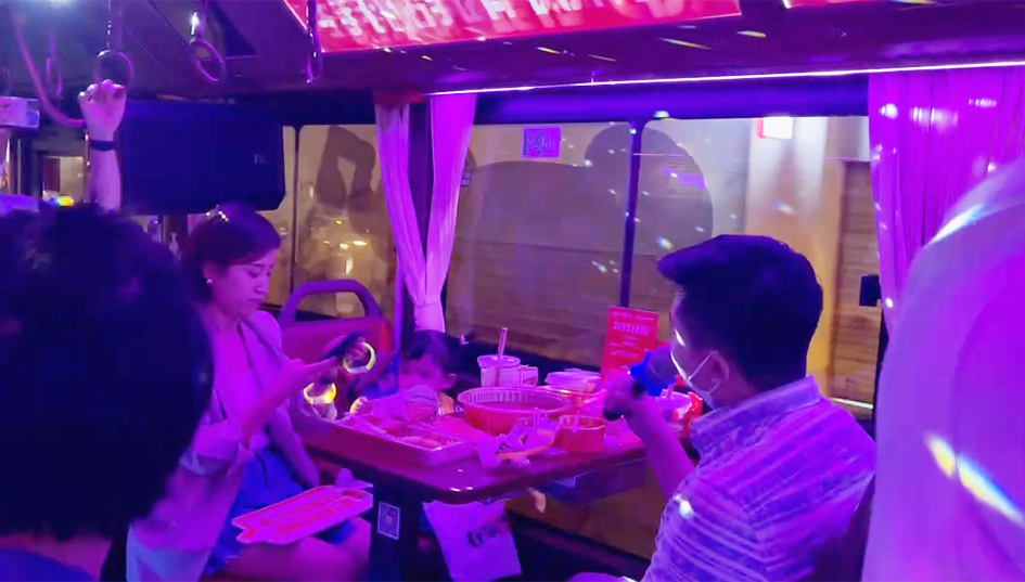 是嘞,你没听错,公交车上可以一边吃火锅一边K歌还可以领略沿途的风景,巴不巴适,浪不浪漫?它就是成都公交集团打造的火锅主题巴士,将火锅元素、音乐元素与巴士进行融合,推出了“巴士+火锅+音乐”的全新文旅消费体验模式。