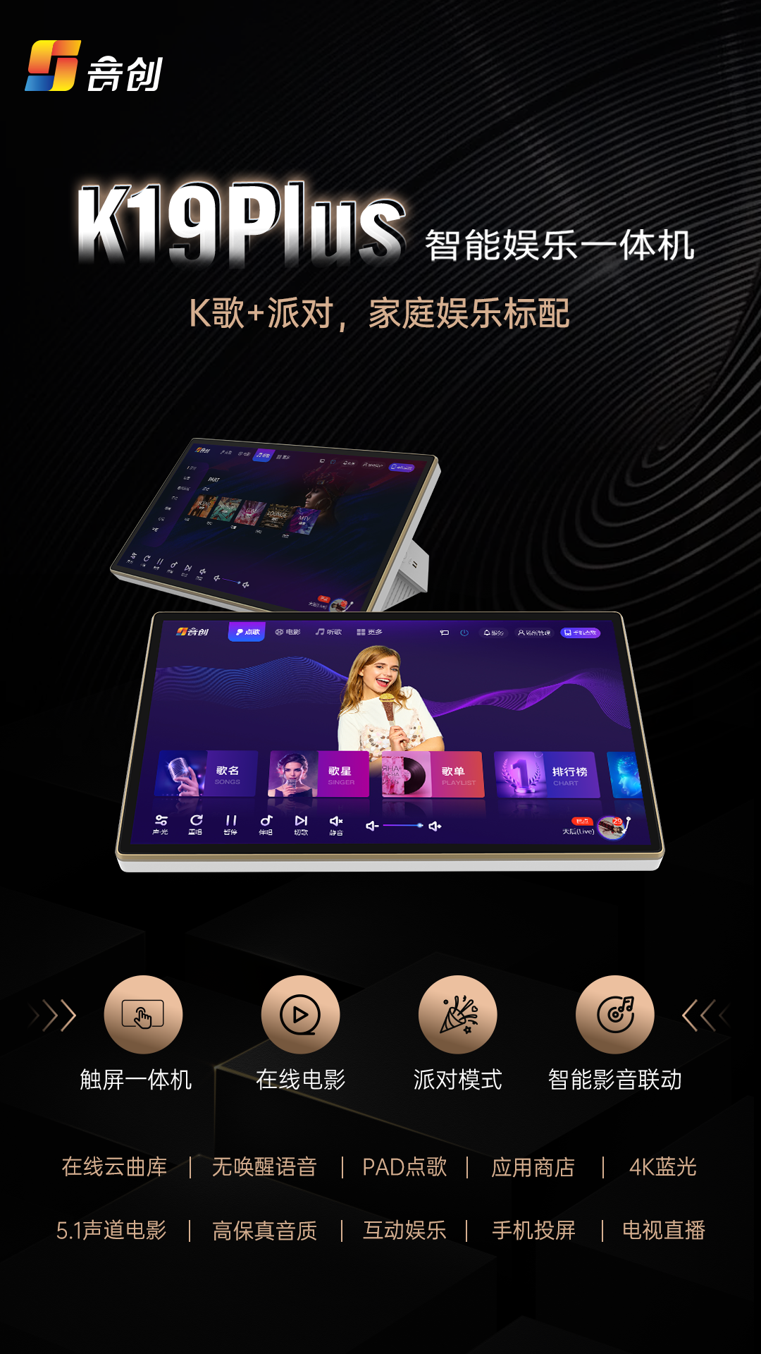这辆火锅巴士使用的点歌机,是音创的K19Plus智能娱乐终端,集点歌机、点歌屏、二合一简约化一体设计,安装简单,即插即用;不仅提供专业级KTV欢唱体验,更有海量电影正版高清大片一机搞定。