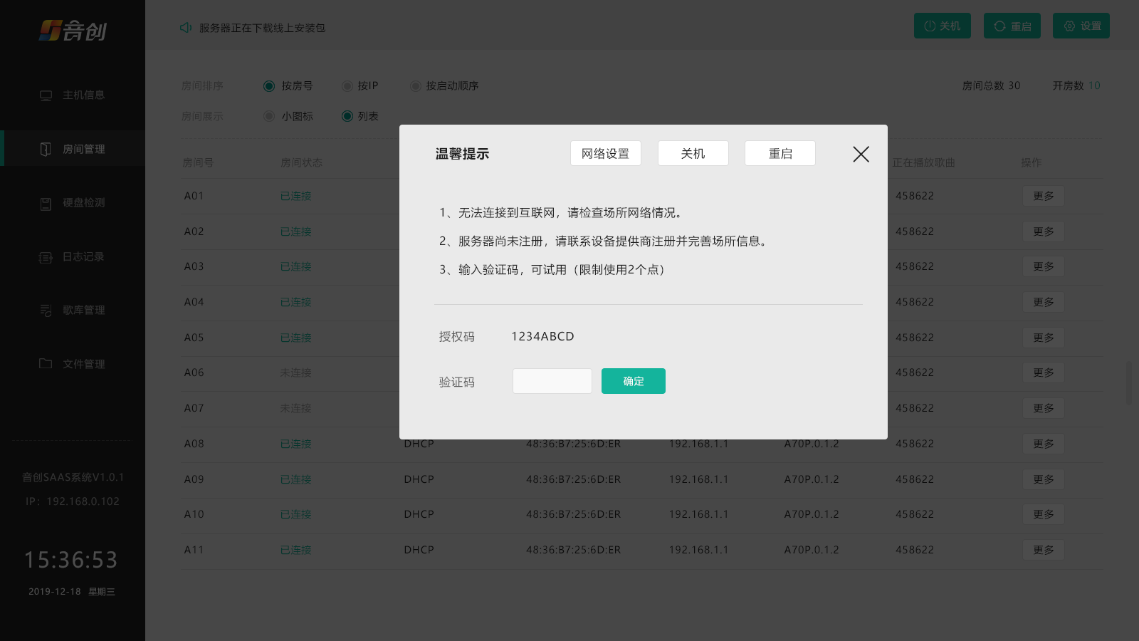 KTV包间多、设备多、系统设置复杂,无法快速上手,场所人员流动性大,岗前培训不方便,需单独设置专业技术岗位,将造成场所经营的人力成本增高。借助云端运营平台,实现对服务器管理、包厢终端设置、包厢终端管控等专业技术层面的远程化。只需一部手机,随时随地远程操作和管理。降低场所的人工成本,提高场所快速响应的工作效率。
